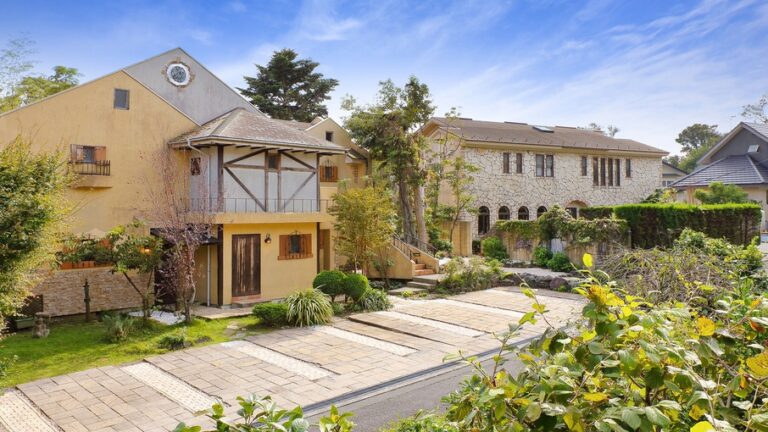 「伊豆高原温泉 ペットと泊まれる全室専用露天風呂付 別邸 石の家」は、英国のマナーハウスを思わせるアンティーク調の隠れ宿。